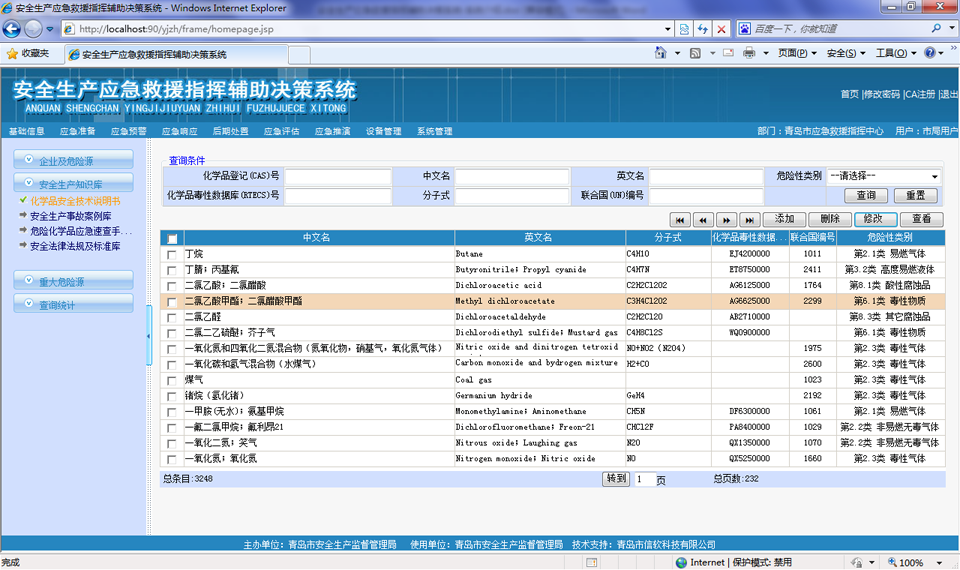 按照GB 16483-2000 化學品安全技術說明書編寫規定】進行危險化學品信息采編,并導入常見化學品3000多條數據。
