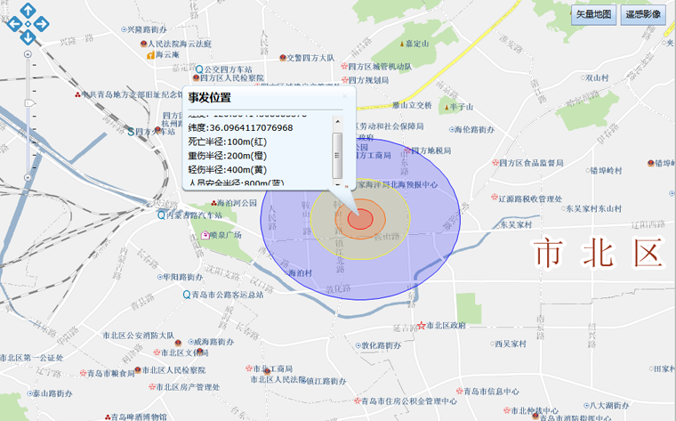 ●基于GIS實現了火災、爆炸、泄露模型的動態模擬和救援路徑、最近醫院路徑、最近消防路徑的指示,使應急救援工作落在了實處。