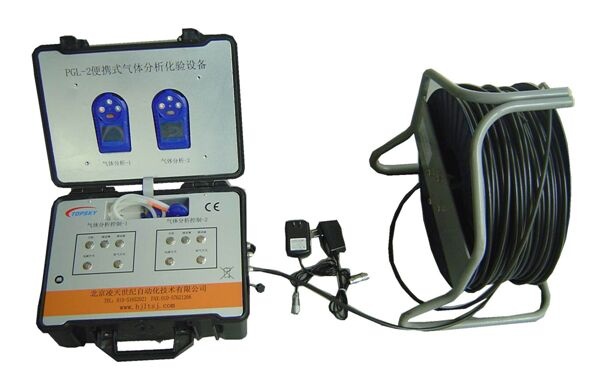 在煤礦發生事故后,為了分析現場的氣體濃度,需要救護隊員攜帶球膽帶事故現場采樣,危險費時而且分析時間長,若發生次生是事故,對救援人員造成很大傷害,不利于快速決策指揮。PGL-2 便攜式氣體分析化驗設備用采樣自動抽氣泵遠程自動采取井下氣樣,不需要救援人員人工采樣,可非接觸檢測井下氣體濃度,進行快速分析,便于救援時的決策指揮。
