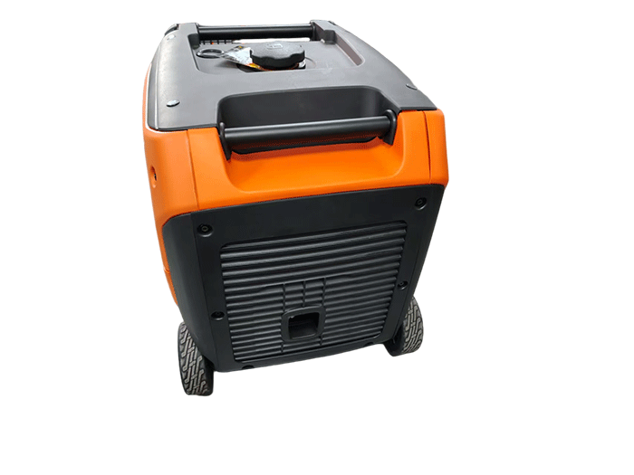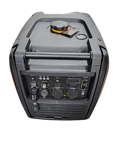 輸出功率為4千瓦,具備手拉啟動、電啟動和遙控啟動三種啟動方式。機身設有旋轉(zhuǎn)開關、手拉柄、加機油口等。配備消音器及防燙護罩,帶有兩個輪子,方便移動。面板上有兩個USB插孔、一個點煙器12V輸出、兩個230V輸出通用五孔插座、一個電壓表以及交流輸出兩個插孔和接地螺絲。
