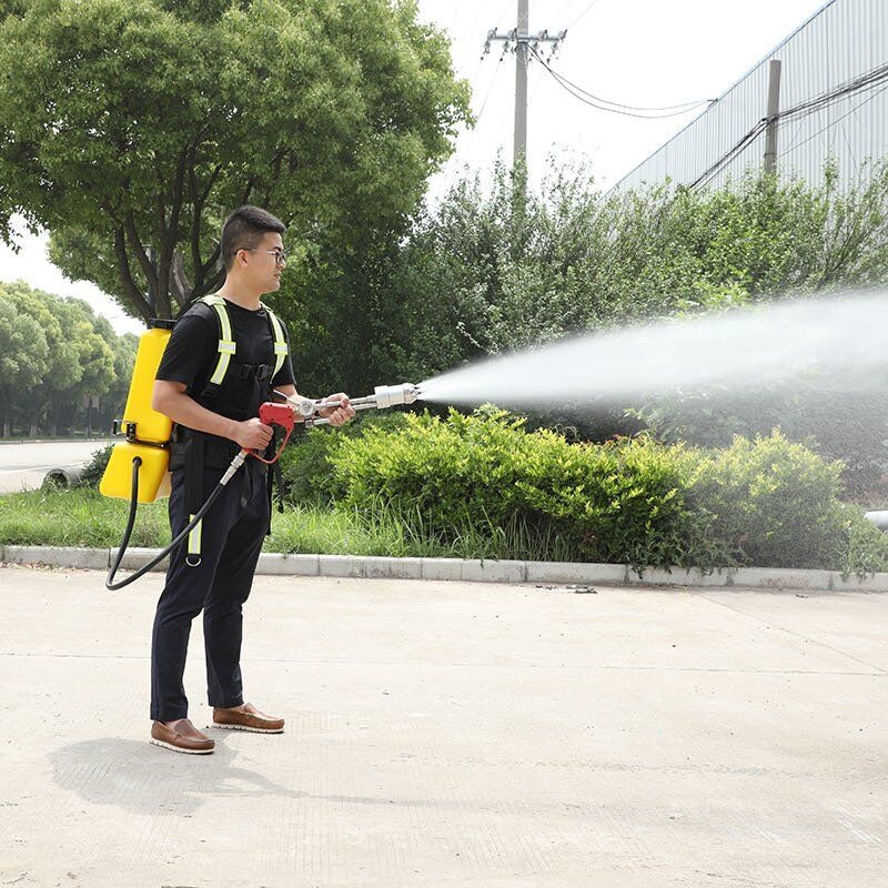 本產(chǎn)品是電機驅(qū)動水泵產(chǎn)生一定壓力的水流,通過對水流壓力和流量的控制后,再通過可產(chǎn)生細水霧的專用噴槍噴出進行滅火的裝置。改裝置設(shè)置了限壓限流、缺水保護、欠壓提醒等多種保護。系統(tǒng)沒有壓力容器。徹底解決了使用壓力容器的安全隱患。