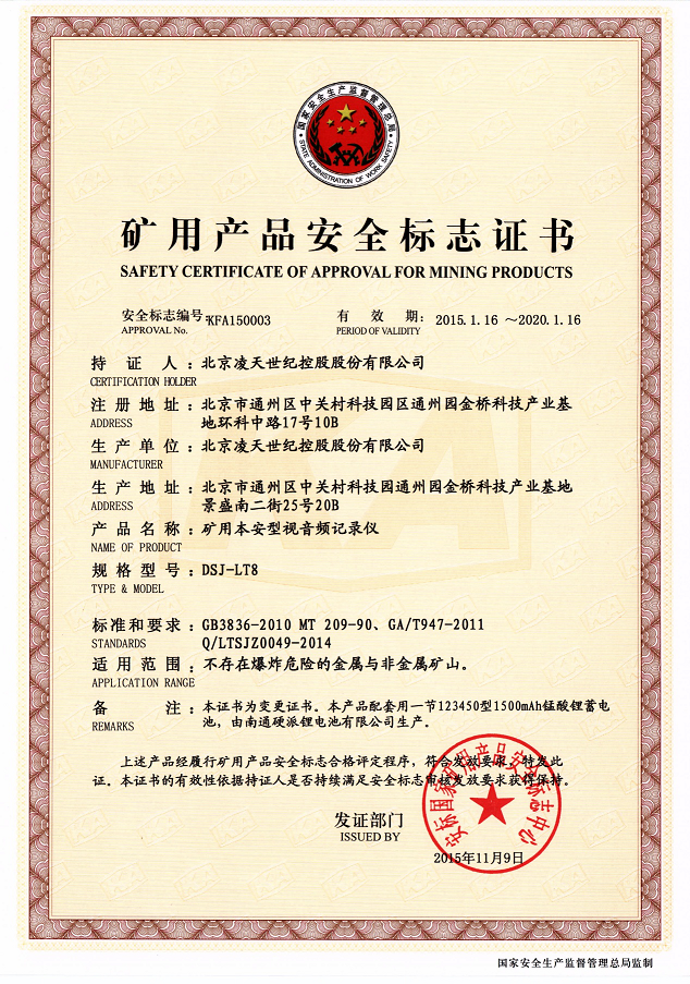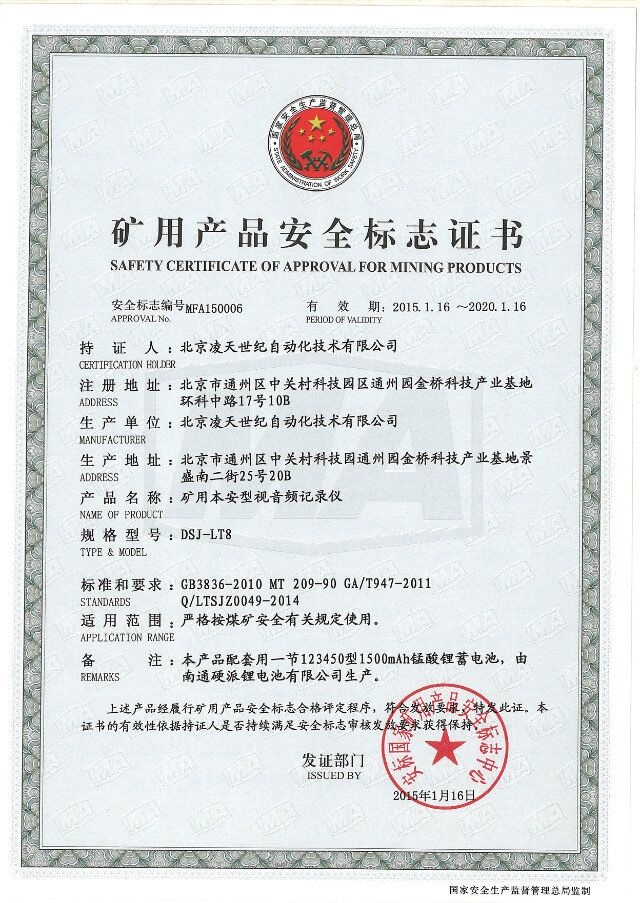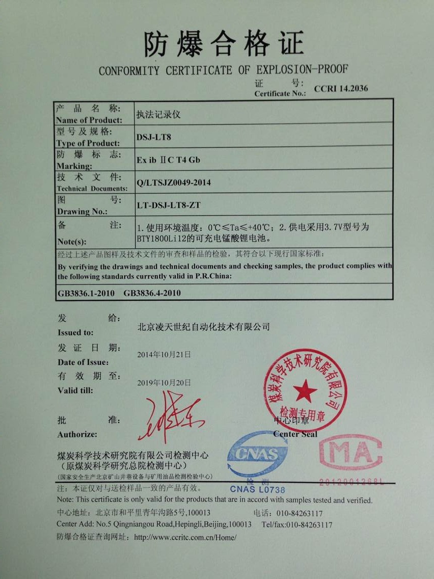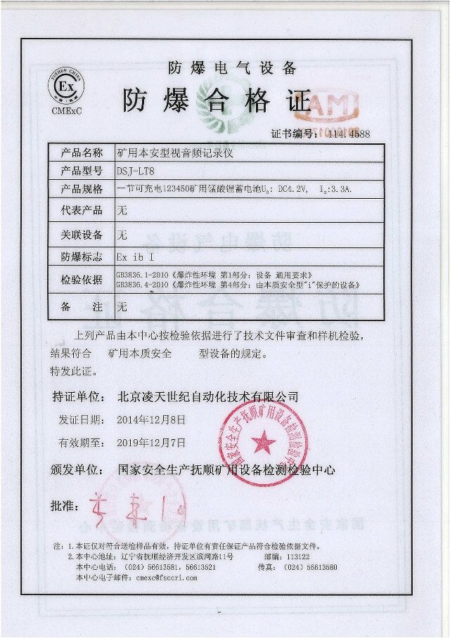 北京凌天防爆執(zhí)法記錄儀取得3c強制性認(rèn)證、化工防爆、煤礦防爆、MA