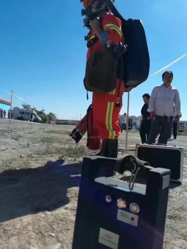 該裝置采用無(wú)線連接方式的信號(hào)中繼與傳輸,應(yīng)急通信網(wǎng)絡(luò)的通信距離可達(dá)20公里。無(wú)線通信網(wǎng)絡(luò)采用自組織、自愈合方式快速形成多跳鏈狀或網(wǎng)狀網(wǎng)拓?fù)浣Y(jié)構(gòu),無(wú)線通信距離不小于2000米,具有快速部署、高帶寬、低時(shí)延、可靠性強(qiáng)等特點(diǎn)。井下救援人員或工作人員,通過(guò)佩戴礦用本安型平板計(jì)算機(jī)、配套的低照度攝像頭自帶語(yǔ)音通話、無(wú)線中繼器、多參數(shù)測(cè)定儀等裝備,將現(xiàn)場(chǎng)的實(shí)時(shí)圖像、語(yǔ)音、環(huán)境參數(shù)等信息實(shí)時(shí)回傳到指揮平臺(tái),調(diào)度指揮人員可以實(shí)時(shí)了解現(xiàn)場(chǎng)情況,并對(duì)現(xiàn)場(chǎng)人員進(jìn)行調(diào)度指揮。