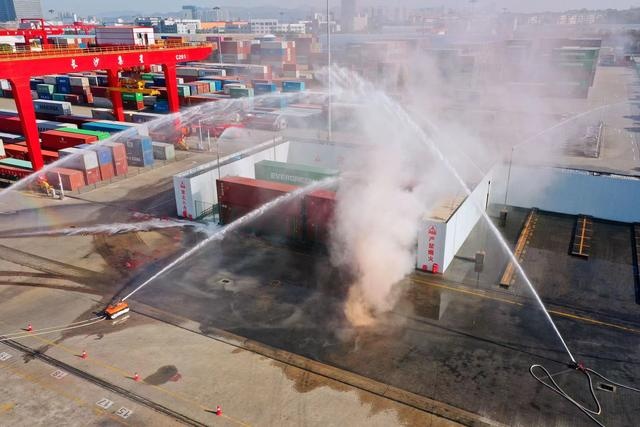 這是由省湘水集團指導,湖南省港務集團主辦的一次煙花爆竹集裝箱堆場燃爆事故應急救援演練。