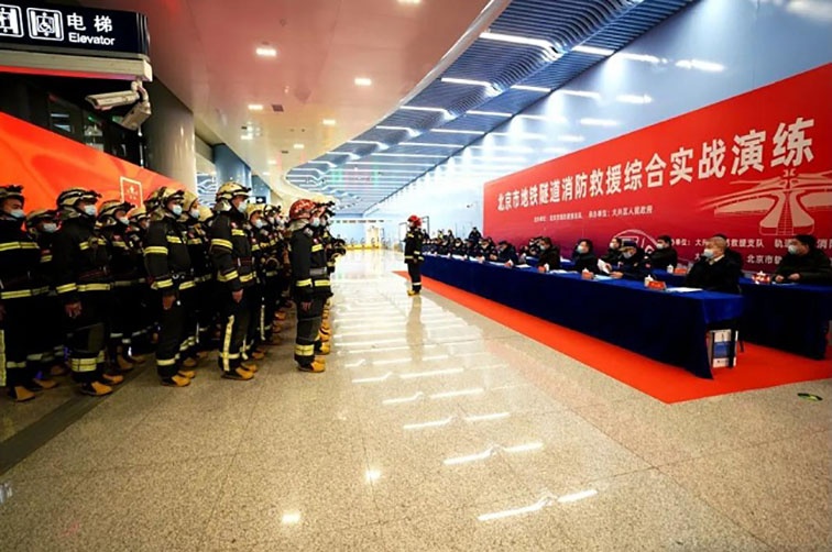為全力做好2022年春運服務保障工作,防范化解重大安全風險,聚焦“全災種、大應急”救援需要和地鐵隧道火災滅火救援處置能力,1月21日凌晨,北京市全要素地鐵隧道火災滅火救援綜合實戰演練在北京地鐵大興機場線大興新城地鐵站開展。整個演練調集了10個消防支隊、52部消防車、248名消防救援人員參與。北京凌天2臺消防內攻偵察機器人參與到此次演練中。