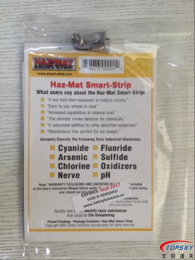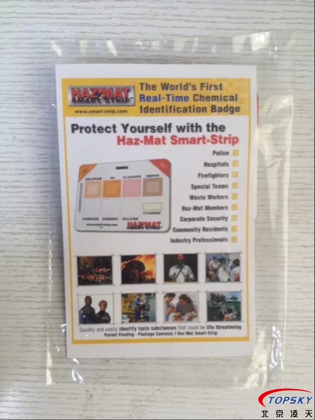 l 經特殊設計的指示貼片可檢測到多達八種化學成分包括氯氣,氟化物,神經毒氣,氧化劑,砷,硫化氫,氰化物,酸堿度;