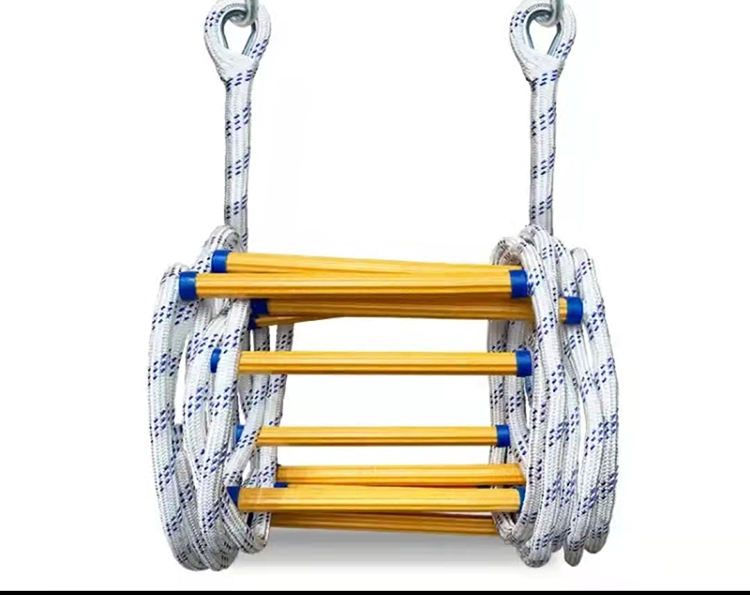 救生軟梯是一種用于營救和撤離火場被困人員的移動式梯子,可收藏在包裝袋內(nèi),在樓房建筑物發(fā)生火災(zāi)或意外事故時,樓梯通道被封閉的危急情況下,是進(jìn)行救生用的有效工具。