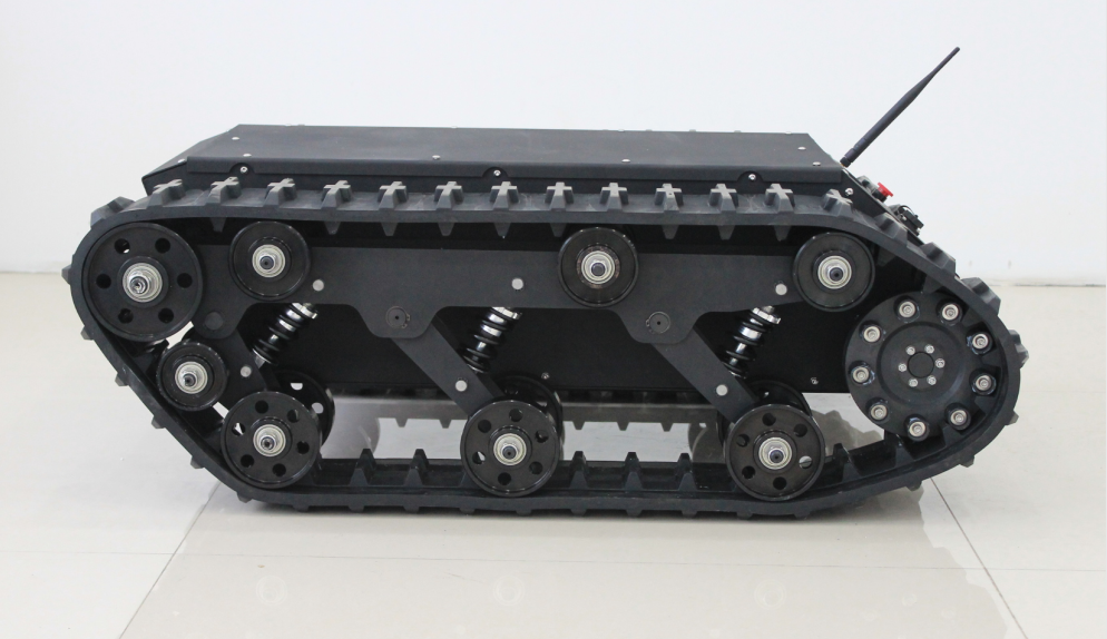 3) 履帶支撐面上有履齒不易打滑,牽引附著性能好,獨立懸掛設計,使底盤車行駛更平穩。