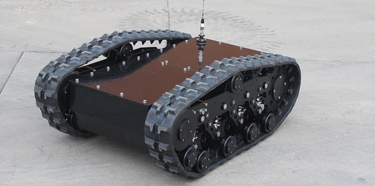 開發空間大、行駛更加平穩。是一款通用型履帶式機器人底盤車,整車采用克里斯蒂獨立懸掛設計,更好的做到重載避震。內部搭載高扭矩減速電機,為底盤提供強勁動力,迎難而上。精準的底盤高度搭配合理功率的電機,使得該車型具有低重心,通過性強、重載避震運行平穩等優點,廣泛用于復雜環境下的機器人移動解決方案。