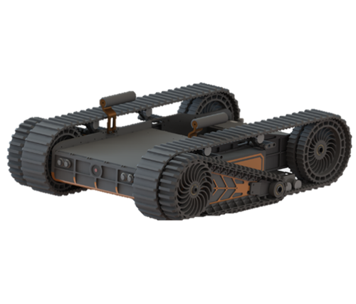 單擺臂履帶機器人底盤是一款通用型履帶式底盤車,可滿足小型偵查類機器人越野性能及平穩(wěn)性能的超高要求,方便用戶搭接設備、擴展應用,內部搭載高扭矩直流有刷減速電機,為底盤提供強勁動力,迎難而上,精準的底盤高度搭配合理功率的電機,采用前雙擺臂+履帶的結構形式,履帶和擺臂適合復雜地形,可以提高越障性能,且做出快速作戰(zhàn)部署。