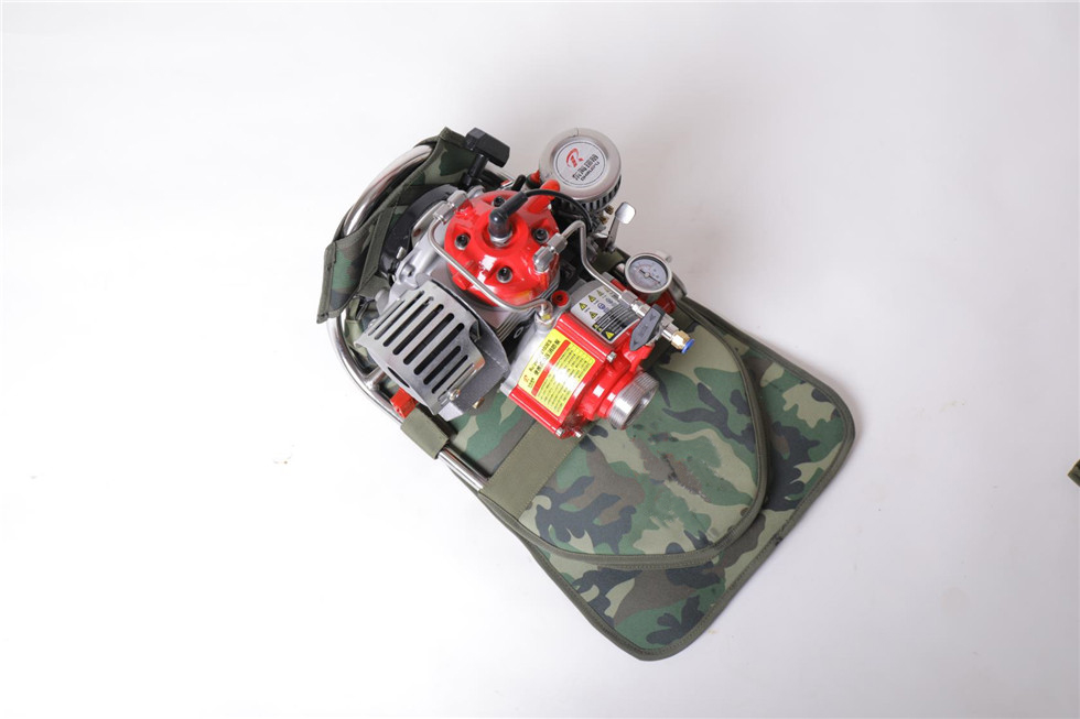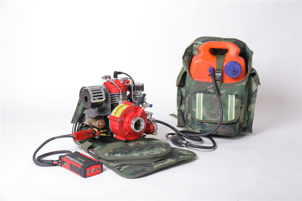 ⑿配有兩套專用水泵和油箱的雙肩高檔背包,更方便攜帶和翻山越嶺的行軍,此背包可以快速拆卸,避免背帶系統(tǒng)接觸水源,防止消防員背負時弄濕衣服,冬季可減少衣服和背包結(jié)冰的幾率。