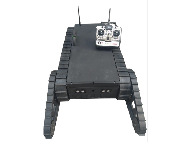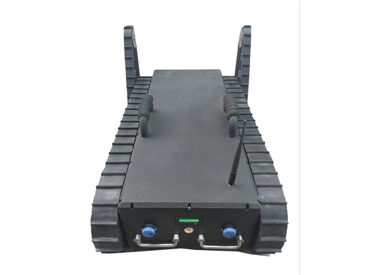 單擺臂機器人底盤車是一款通用型履帶式機器人底盤車,可滿足小型偵查類機器人越野性能及平穩性能的超高要求,方便用戶搭接設備、擴展應用,內部搭載高扭矩直流無刷減速電機,為底盤提供強勁動力,迎難而上,精準的底盤高度搭配合理功率的電機,采用前2擺臂+履帶的結構形式,履帶和擺臂適合復雜地形,可以提高越障性能,且做出快速作戰部署。