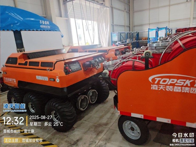 RXR-Q200L 排澇破拆一體化機器人采用汽油機為動力,液壓系統驅動,使用遠程無線遙控/有線遙控/車體操控。排澇破拆一體化機器人可用于城市車庫、地鐵站、隧道、涵洞、城市狹小道路等環境的排澇救援。當城市發生洪澇災害,導致地下車庫、地鐵、隧道等蓄水嚴重時,排澇破拆一體化機器人可實現快速排洪救援。本產品具備排水、音視頻偵察、水中漏電偵察、災區環境偵察等功能。本產品配套的水帶車可同時收卷2盤DN200大口徑水帶。機器人配備的水泵具有排污、放水、檢修等大口徑端口設置。