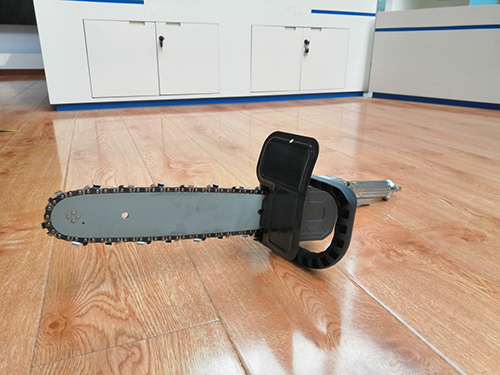 PJQL-4 礦用氣動(dòng)鋸(以下簡(jiǎn)稱氣動(dòng)鋸),是我公司經(jīng)過多年的探索,在機(jī)電、通風(fēng)、采煤等各科室的高技術(shù)素質(zhì)科技人員的通力合作下,為煤礦開發(fā)出的礦用切割與開槽工具。氣動(dòng)鋸由鋸頭、鏈條、聚氨酯軟管三大部分組成,聚氨酯軟管將氣源和氣動(dòng)鋸連接起來,氣源提供的氣壓驅(qū)動(dòng)氣動(dòng)鋸高速運(yùn)轉(zhuǎn),進(jìn)行切割。工作時(shí),冷卻水通過導(dǎo)板中間的孔流向切割部位,起到冷卻和降塵的作用。并且具備雙重?cái)嗨Wo(hù)功能,氣動(dòng)鋸在切割時(shí)采取了濕法切割水冷卻,以避免切割時(shí)出現(xiàn)火花。可用于采掘工作面使用的煤層、巖石切割,用于密閉墻的砌筑,也可用于礦山救援時(shí)的混凝土與巖石破拆。