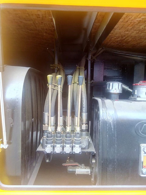 輛安裝四只液壓支撐腿,可在駐車狀態(tài)均分車輛靜壓,保護車輪及彈簧鋼板。選用進口優(yōu)質(zhì)意大利多路閥組,液壓支撐缸采用進口密封件,單缸靜載荷5噸,加裝雙向液壓鎖。
