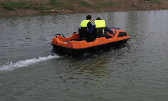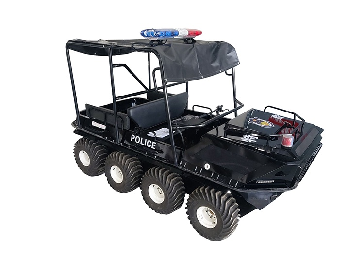以完成可靠的野外應急救援為目的,該水陸兩棲全地形車可提供一種安全的運輸方式和可靠的運載平臺,產品可以在山地環境、濕地環境、沼澤環境、水面環境、叢林環境等多種工作環境下,實現全天候連續作業。并且可以在災害現場巡邏勘察、運送受傷人員、并有效實施援救。