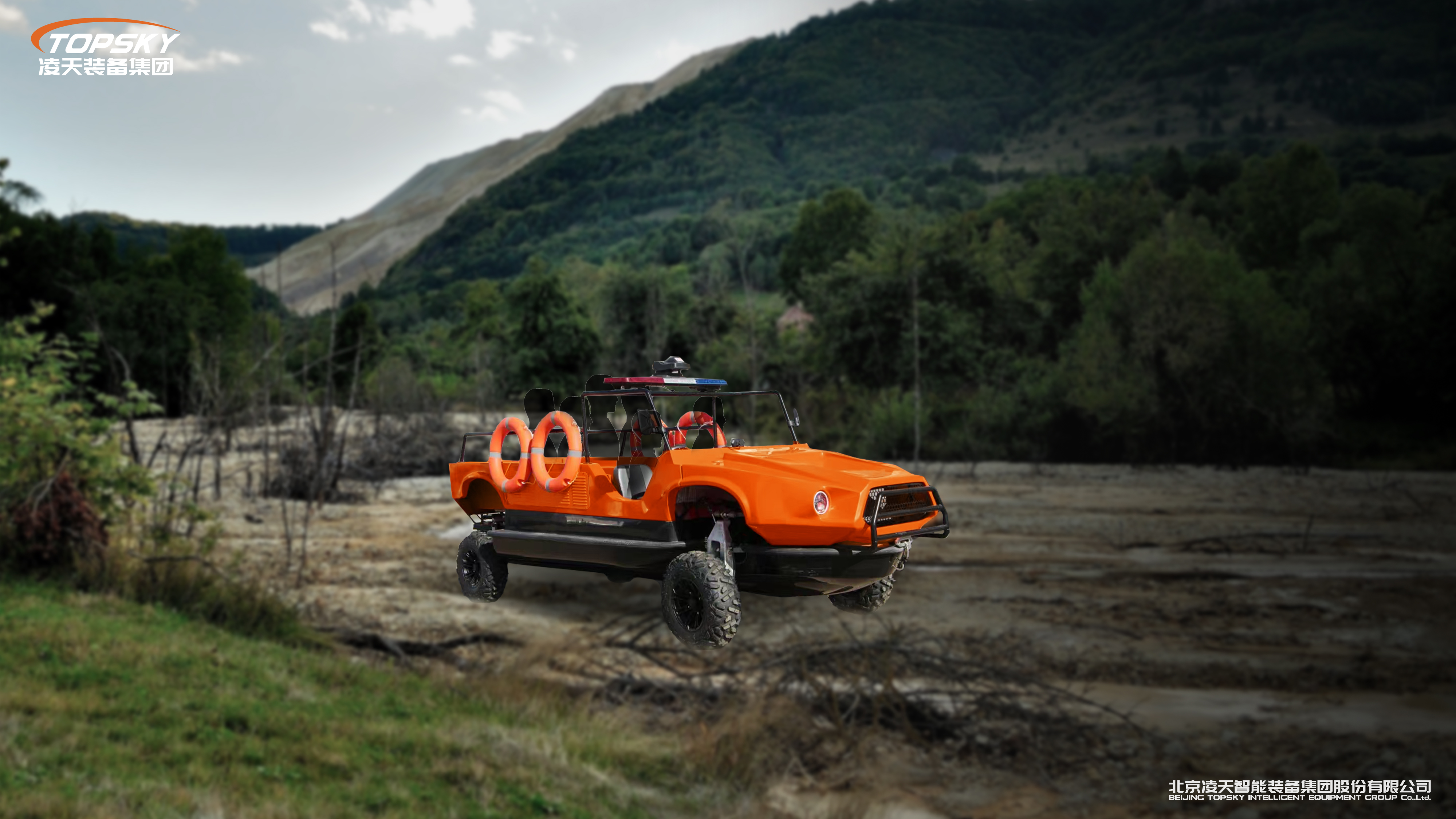 在復雜惡劣的地形條件和自然環境下,水陸兩棲車可以讓搜救隊員和攜帶的救援裝備快速到達救援現場,減少徒步帶來提供消耗,完成最后一公里最好五分鐘緊急救援任務。水陸兩棲車可配備點到絞盤、救援擔架組件、探照燈、警示燈、警報器、脫鉤、破拆工具等裝備, 給救援團隊提供救援保障,更安全的解救傷員和疏散群眾。