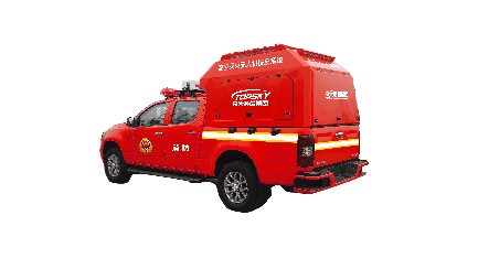 無人機皮卡裝備車,采用多用途貨車(皮卡)底盤為運載平臺,搭載我司自主研發的水帶系留式重型消防滅火無人機和壓縮空氣泡沫系統(CAFS),具備高效滅火(高效泡沫隔離、冷卻、窒息)、高空破窗、自動避障,展開快速、精準鎖定火源、多角度控制火點、空中作戰時間長等特點。機身采用純碳纖維和航空鋁材料制作而成,減輕機身自重同時提高物質載重量,該無人機具備陸空兩棲功能,可以在地面行駛,行走系統可快拆;可噴射水及壓縮空氣泡沫,使用超輕型浮力水帶噴射的壓縮空氣泡沫密度更輕,可以能快速啟動升空,拖帶水帶升至高空,系統操作穩定性更強。
