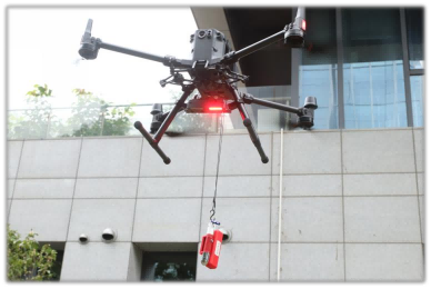 一款具備紅藍爆閃燈和拋投器的二合一裝備。能在惡劣氣候條件下可靠工作,通過接口,可掛載在無人機上使用,可以實現整個安裝過程無需使用螺絲刀,卡扣腳架快裝方式,對飛機無改裝,具備4段拋投功能,安裝方式不會導致云臺架減震球爆裂。