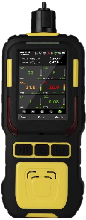 無線復(fù)合氣體探測(cè)儀(以下簡稱探測(cè)儀)支持二十多種智能氣體傳感器,可同時(shí)連續(xù)檢測(cè)5種氣體的濃度(氣體種類可自由組合系統(tǒng)智能識(shí)別)、粉塵濃度(PM2.5、PM10)、核輻射、溫濕度。將采集到的氣體數(shù)據(jù)、GPS位置、粉塵濃度、核輻射、溫濕度等數(shù)據(jù)通過4G上傳至監(jiān)管后臺(tái)實(shí)現(xiàn)無線管理;探測(cè)儀也可以實(shí)現(xiàn)現(xiàn)場實(shí)時(shí)數(shù)據(jù)一鍵打印功能。探測(cè)儀具有氣體濃度調(diào)校標(biāo)定、濃度值超限報(bào)警功能、STEL超限報(bào)警和TWA超限報(bào)警,一旦設(shè)備采集數(shù)據(jù)濃度值超限,設(shè)備立即開啟聲光振動(dòng)報(bào)警進(jìn)行警示,并將此時(shí)數(shù)據(jù)同步上傳至平臺(tái)。可將多臺(tái)探測(cè)儀的監(jiān)測(cè)、監(jiān)控信息上傳,并建立特殊作業(yè)場所多功能監(jiān)測(cè)監(jiān)控系統(tǒng)平臺(tái),保障作業(yè)人員的安全。采用新一代主流外觀設(shè)計(jì),美觀耐用。