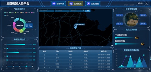 消防機(jī)器人云平臺(tái)集機(jī)器人分布、機(jī)器人統(tǒng)計(jì)、視頻、氣體、語(yǔ)音、控制等集成于一體,做到全局把控、機(jī)器人監(jiān)測(cè)、全生命周期綜合使用及可視化操作。當(dāng)遇到突發(fā)事件時(shí),能在線直觀的分析并高效的了解到設(shè)備實(shí)時(shí)狀態(tài)。