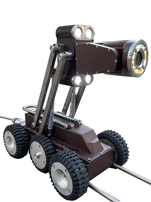 針對煤礦井下發(fā)生事故后,救援人員不能及時了解現(xiàn)場情況的問題,設計并研制了一種鉆孔救援機器人,該產品是由爬行器(攝像頭)、鉆孔自動(手動)盤線車、無線系統(tǒng)控制器 (電腦端)、電源適配器等部分組成,通過操作主控制機器人界面,可實現(xiàn)控制爬行器在孔內行走,并將釆集到的救援孔內部圖像通過線纜實時傳輸?shù)街骺刂破鬟M行實時監(jiān)視,配合判圖軟件一鍵生成檢測報告。檢測系統(tǒng)還配有專業(yè)的控制軟件,可運行在windowslO系統(tǒng)上控制本套檢測機器人。可進行圖像存儲。監(jiān)視圖像時如果發(fā)現(xiàn)人與物體,可以通過錄像或拍照記錄出來以便對其判斷、分析。在主控制器的顯示界面上,可以隨時了解爬行器的狀態(tài),包括傾角、氣壓、距離、速度、平臺高度、日期等相關信息。該裝置也可用于其他地質鉆井探測中,基于礦山鉆孔救援探測需求,針對現(xiàn)有探測機器人信息探測范圍窄、探測距離較短、功能單一、無越障能力等問題,設計出礦山鉆孔救援探測機器人。